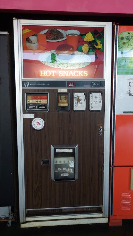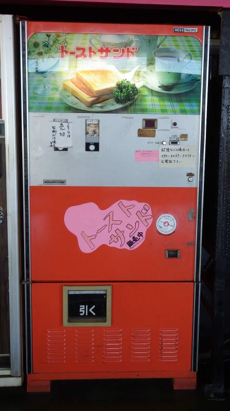 埼玉のレトロ自販機の聖地です。ハンバーガー、うどん、トースト、などの販売機がある。
