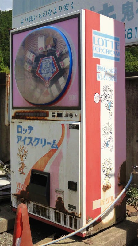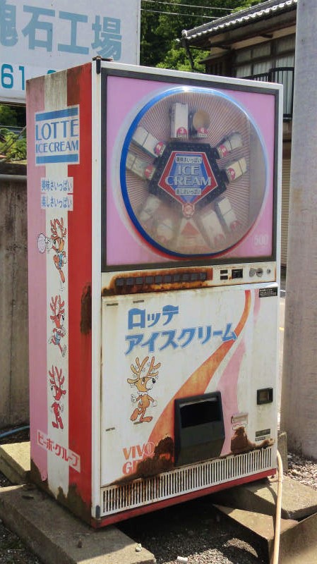 群馬県の郊外、鬼石にあったVIVO自販機。丸を基調とした斬新なディスプレイ、ルーレット付き、など80年代の自販機全盛期を思い出す。