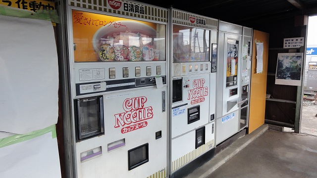 うどん自販機は稼働しておらずジュースと菓子類のみだった。